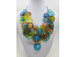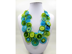 The beads I make for my Tokens pieces are round and somewhat thin. The remind me of tokens you might use for the subway or a car wash. No two pieces are ever alike and when worn, they make a soft "tinkling" sound with movement, like a mini wind chime.