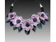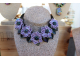 Five lavender, chunky flowers with iridescent centers and leaves built on soft padded satin with adjustable leather cording.