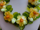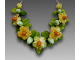 Merry Carolyn's flowers are made from a delightful piece of old stained glass I found. I had a feeling I could melt it into something yummy and I love the variation of yellows. The shade of green glass I used for the leaves contrasts nicely with the lighter colors of the flowers and buds. Named for my Mother, Mary whose middle name was Carolyn.