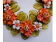 Both types of Merry Mavis flowers are made from Vetrofond glass and those particular colors are long out of production. I'll be sad when I use the last of the rods. The leaves are made from a wine bottle, the perfect shade of green for this combo. At least I never have to worry about running out of that color!