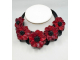 Five dark red, double rowed flowers with pitch black centers and leaves. Gothic, edgy, stunning.